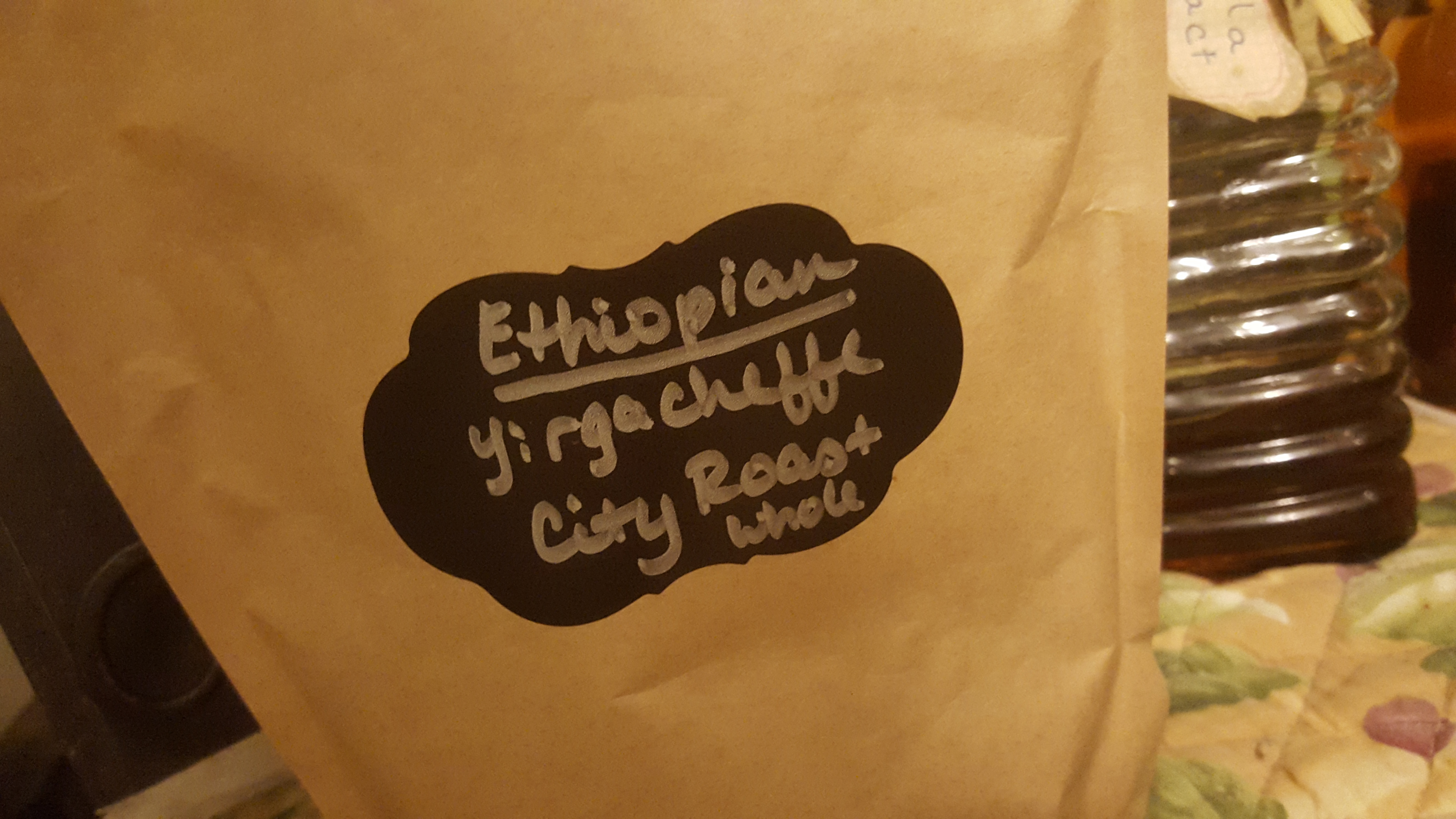 If you decide to try out my little recipe up there, I’m pretty sure you’ll never stop thanking me—or Shannon, obviously. I’ve tried a few of the Ratzy’s blends now, and my favorite so far is the Ethiopian Single-Origin Coffee. It came in a bag like this, with little stickers and stamps on the back, which made me happy. Just plain happy.